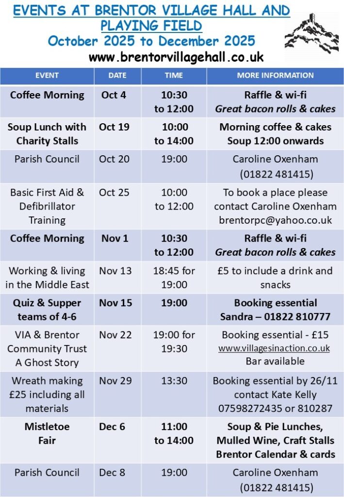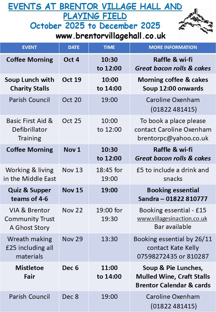 By SiteAdminCommunity Information, Event List, Upcoming, Village Groups, Village Hall, What's On With thanks to the Village Hall committee for collating and creating the list.